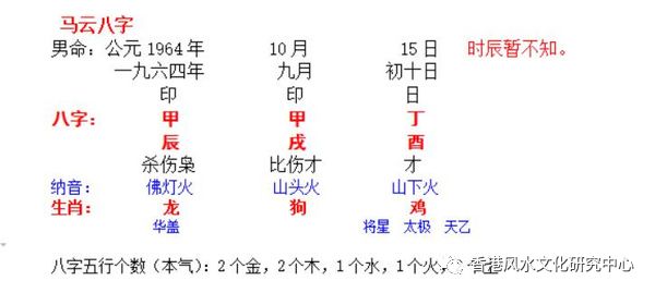 4、为什么一定要学星学大成? 很多大师在论八字时,认为富豪的八字一定有财星,有官贵的八字一定有官或印,事实真是这样吗? 例如,马云的八字(时辰不详)如下: